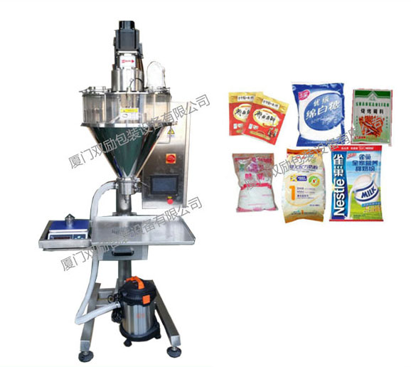 该半自动充填包装机能自动完成计量、充填等工作。由于是按照国家GMP标准而设计,以至于适用于 包装那些易流动或流动性极差的粉粒状物料,如奶粉、饲料、米粉、白糖、咖啡、味精、固体饮料、葡萄糖、米粉、固体医药、农药、粉粒状添加剂、染料等。